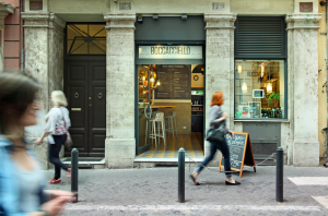 Il cibo di strada diventa così una cucina gourmet da consumare in casa, in ufficio o comodamente seduti nel Bistrot, un locale moderno e curato in ogni dettaglio, contraddistinto dal soffitto a mattoni e da storici affreschi, tipici del rione Monti.