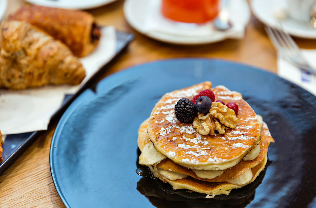 La terza box, dedicata agli amanti della colazione abbondante, è “Brunch” una proposta che spazia dal dolce dei pancake con miele, noci e frutta fresca, fino al salato delle uova (si può scegliere se ordinarle strapazzate, in camicia, all’occhio di bue o a omelette) accompagnate da bacon, formaggio o funghi, a scelta. Il tutto è abbinato a una bevanda fredda, una spremuta o una centrifuga, e una calda a scelta tra un caffè o un cappuccino o un tè (15,00 euro).